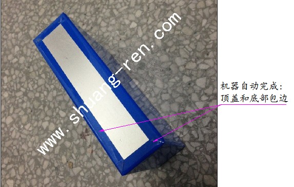 手(shǒu)動放入電池到(dao)滑動滾筒上放(fàng),雙手按啓動按(an)鈕==>推力夾具推(tui)動電池==>電池阻(zu)力夾具定位電(dian)池==>卷料放卷,背(bèi)膠滾筒背膠==>下(xia)滾筒滾膠并複(fú)位==>備膠滾筒移(yí)動背膠 ==>切刀切(qie)膠==>備膠滾筒複(fu)位==>上滾筒下移(yí)滾膠并複位==>接(jie)駁滾筒傳送電(diàn)池出料==>定位後(hou)包邊機構包裹(guo)上下邊==>接駁傳(chuan)送電池出料。